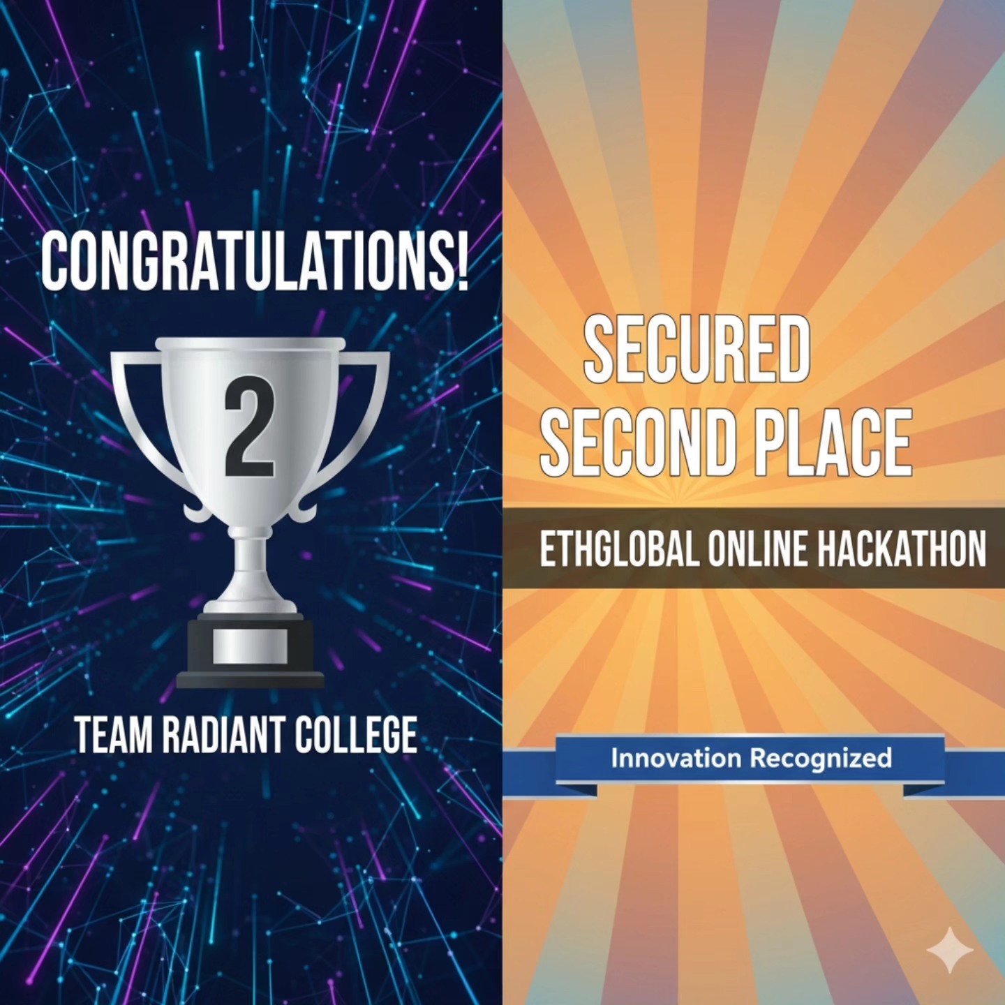 Proud Moment for Radiant College — Secured 2nd Position in ETHGlobal Online Hackathon!