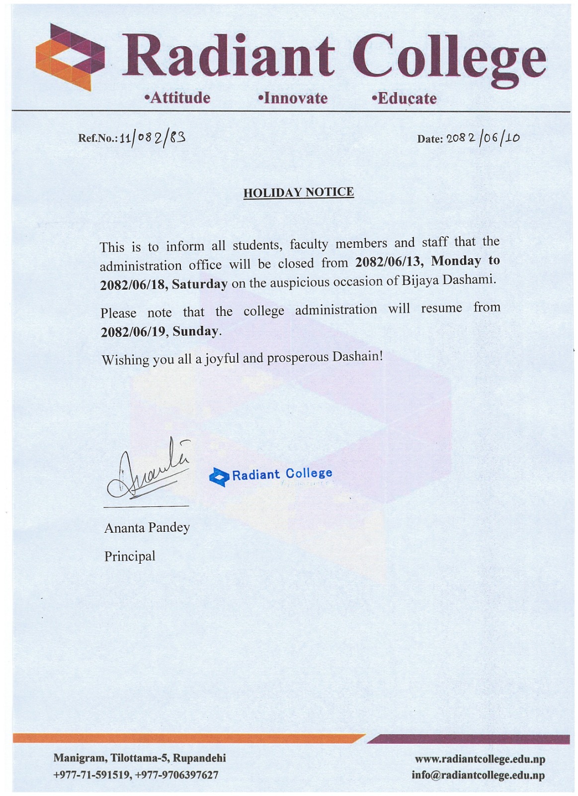 Holiday Notice - Dashain 2082