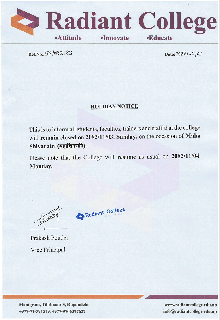 Holiday Notice - Mahashivaratri