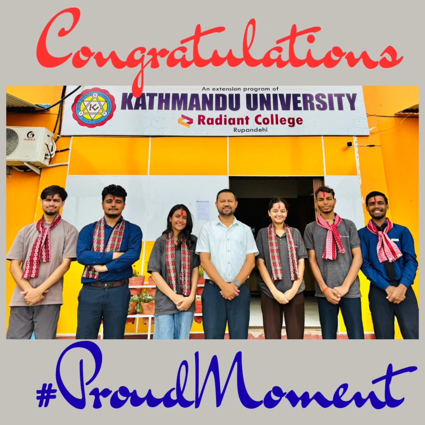 Affiliated with Kathmandu University, Radiant College is committed to delivering quality, industry-relevant education through a strong academic foundation and practical learning environment. This achievement highlights the college’s ongoing efforts to nurture capable, future-ready professionals.