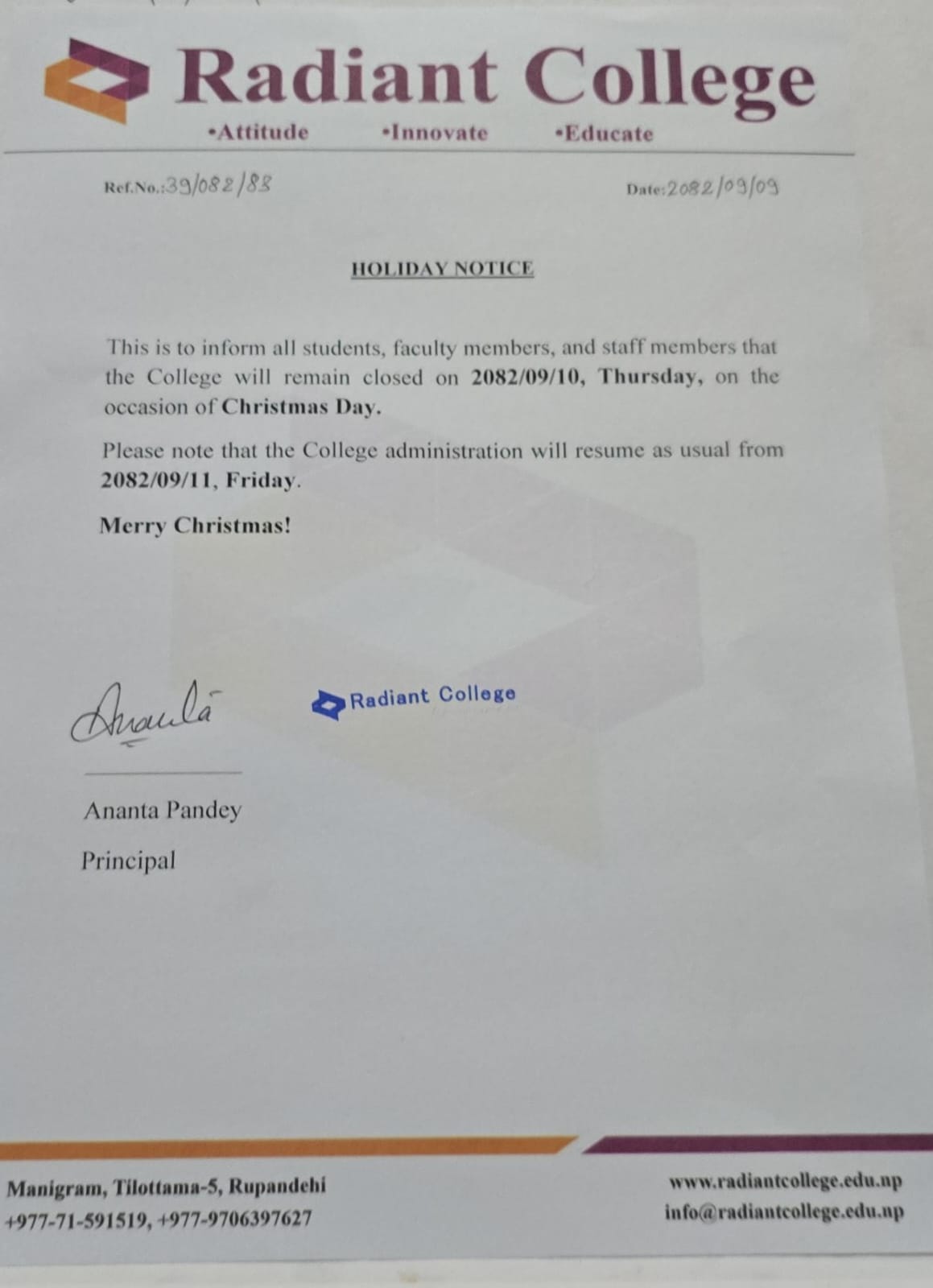 Holiday Notice - Christmas 2025