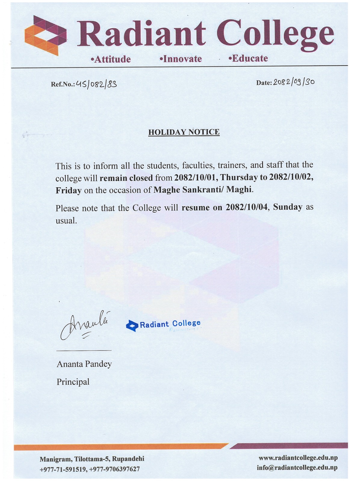 Holiday Notice - Maghe Sankranti 2082