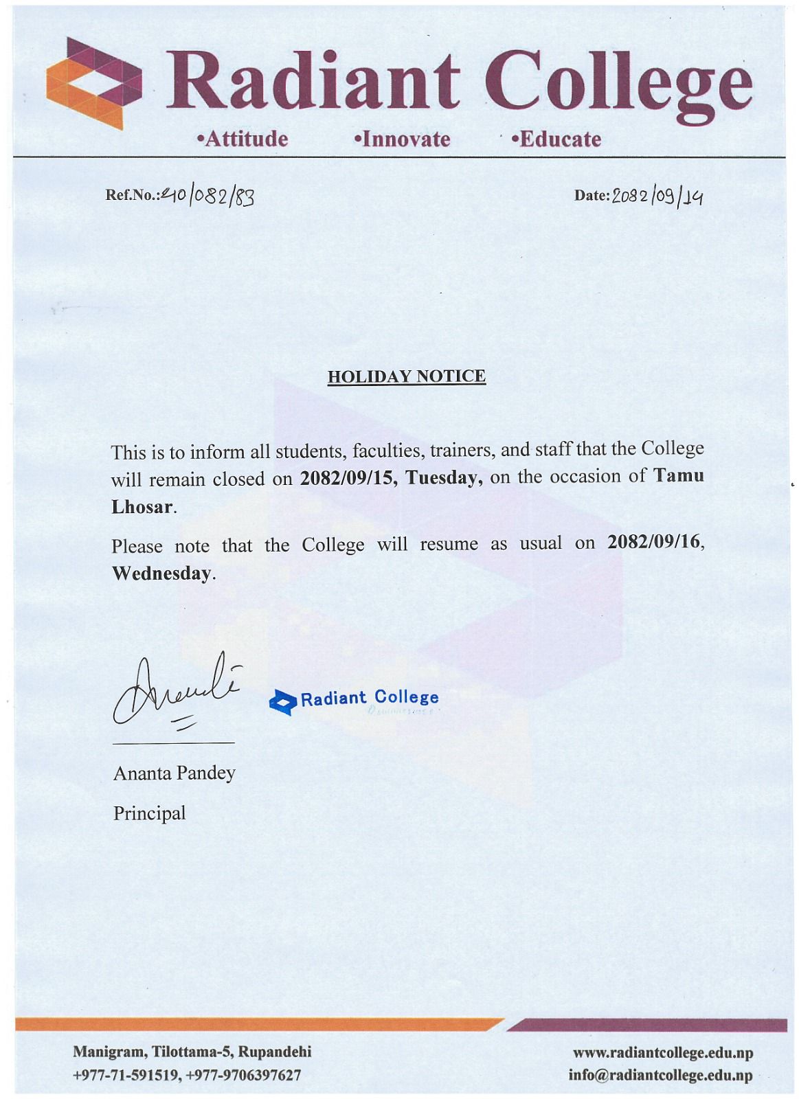 Holiday Notice - Tamu Lhosar 2025